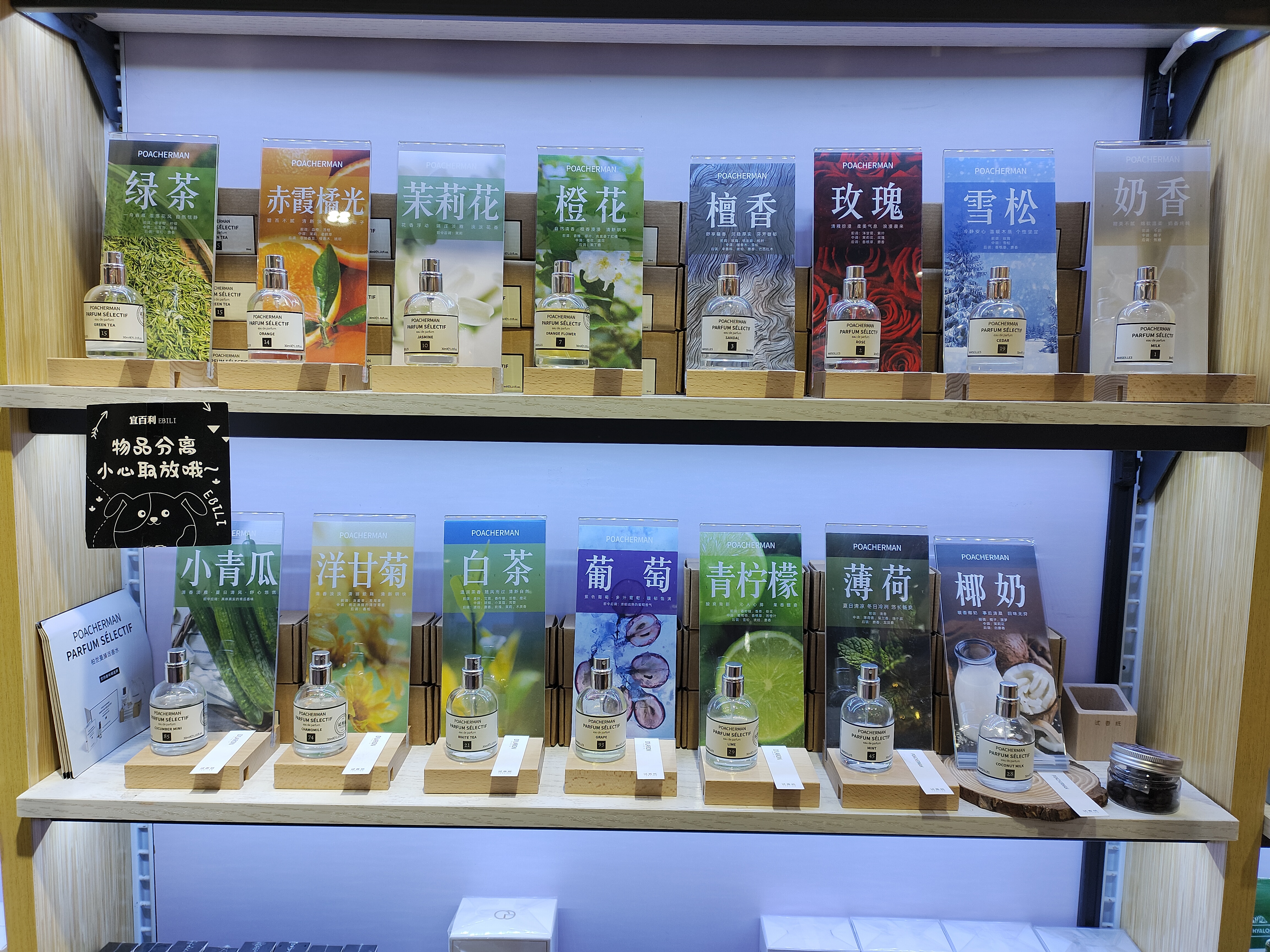柏世曼香水的香调分为12大系列,涵盖了自然草木、生活记忆及创新香氛的多元风格。从清新的柑橘调、治愈的牛奶调,到沉稳的木质调、独特的“榴莲”“烤番薯”,每一类香调都对应不同的用户心境与场景需求。