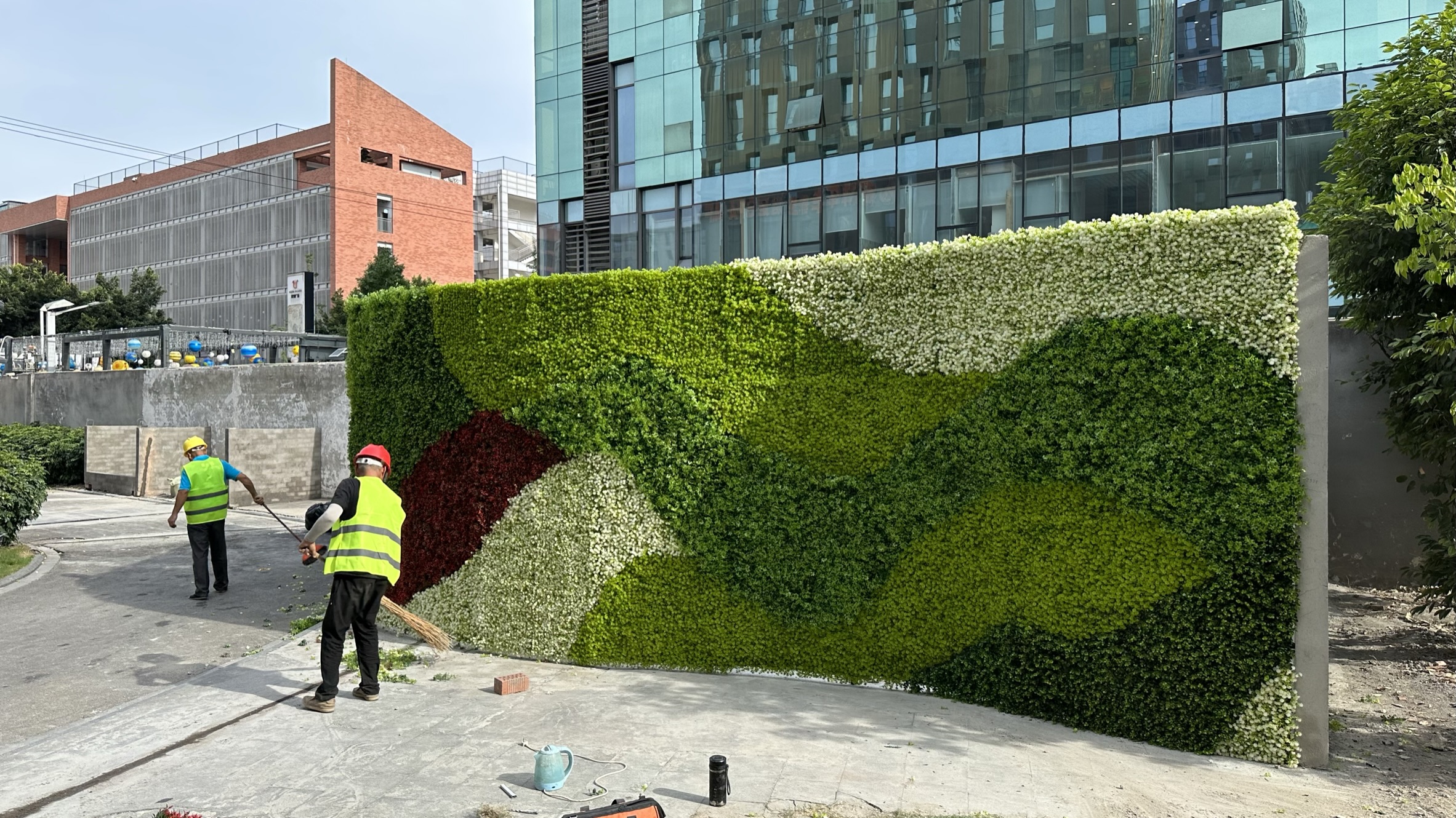 上海绿墙绿化工程有限公司的真植物垂直绿化,采用滴灌系统,通过管道将水直接输送到植物根部,需要人工定期检查管道是否堵塞。