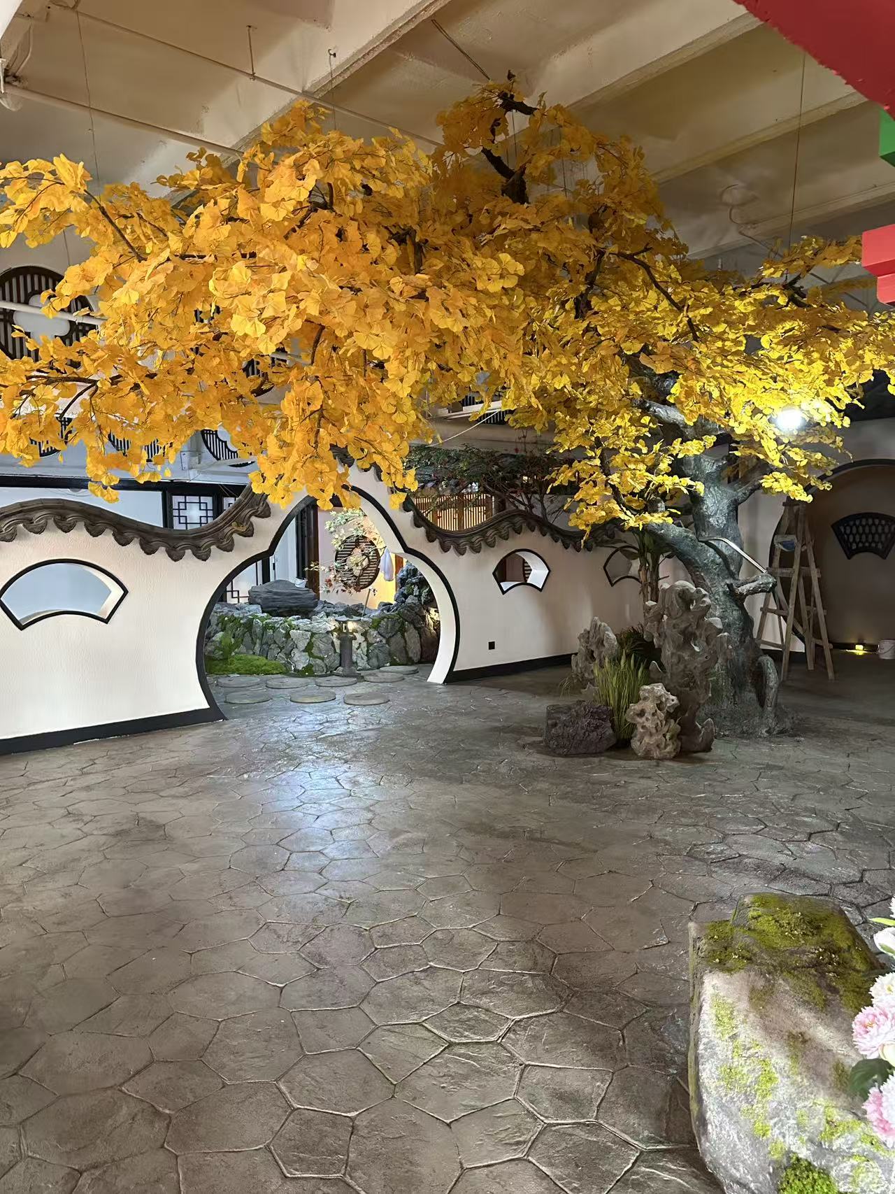 “混植”不是简单的“仿真+真植”拼凑,而是基于场景的“精准设计”。比如针对连锁火锅店的等候区,我们会选择“仿真常春藤墙面+真小型多肉点缀”——仿真常春藤解决了“高温环境下真植物易枯萎”的问题,真多肉则通过“可爱造型”提升客户等候时的愉悦感;针对商场中庭的节日美陈,我们会用“仿真植物雕塑+真花卉搭配”——仿真雕塑保证了“大型造型的稳定性”,真花卉则通过“季节色彩”呼应节日主题。
