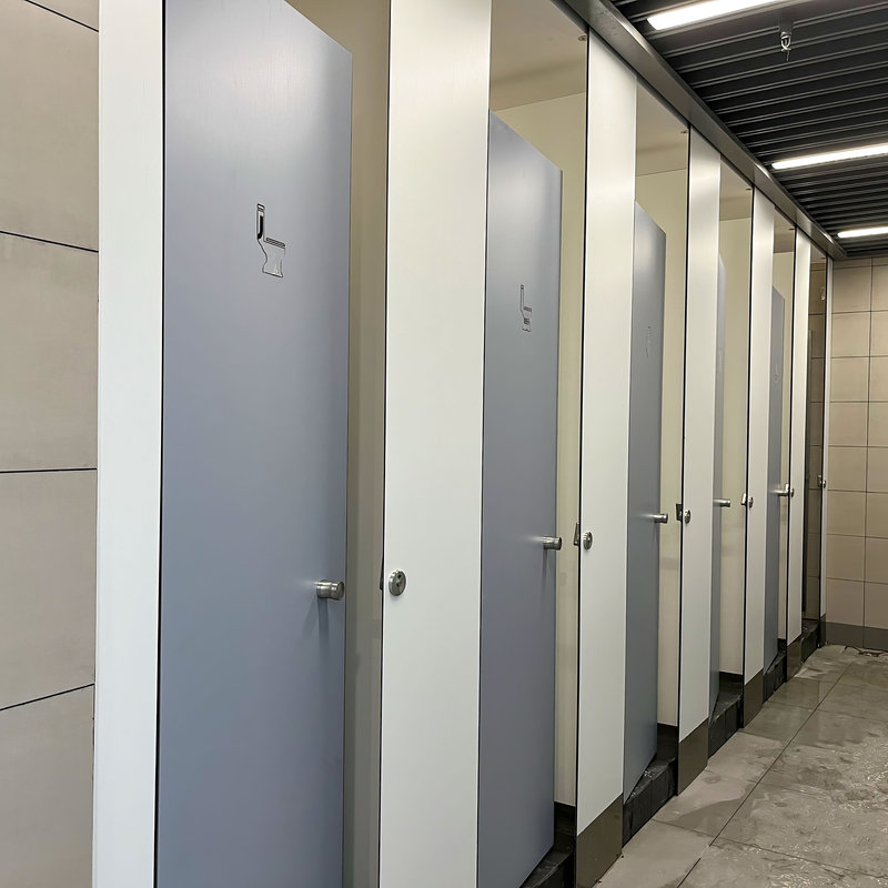 卫生间隔断是公共建筑中用于分隔卫生间空间、保障使用者隐私的模块化建筑设施,由板材、框架、连接件及配件组成,具备可拆卸、可定制、易维护的特点。其起源于20世纪中期的欧美公共建筑改革,旨在解决传统砖砌隔断“重、笨、脏”的痛点——传统隔断无法灵活调整空间、表面易积污、施工周期长,而模块化隔断通过标准化设计,实现了空间利用的灵活性与维护的便捷性。如今,随着公共健康意识提升,卫生间隔断已从“功能性设施”升级为“兼顾卫生、安全与美学的空间解决方案”,成为医院、机场、学校、商业综合体等公共空间的核心配置。
