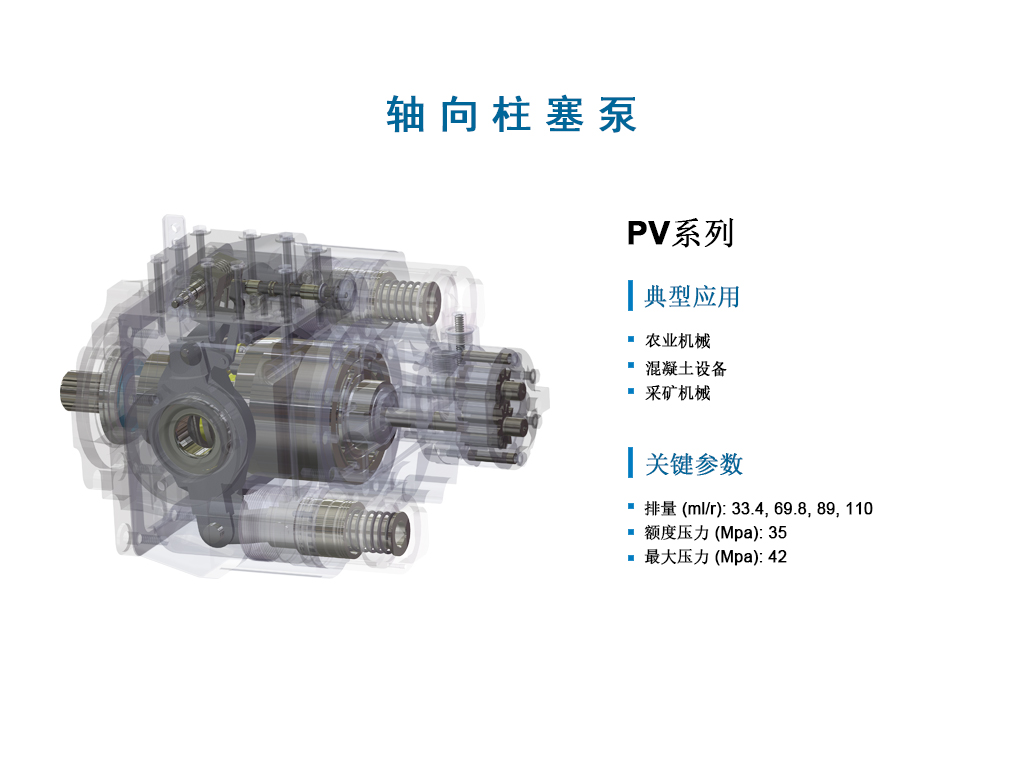 - 按控制方式:分为定量泵(排量固定)和变量泵(排量可调节,如海兰德液压的HPV系列变量柱塞泵)。